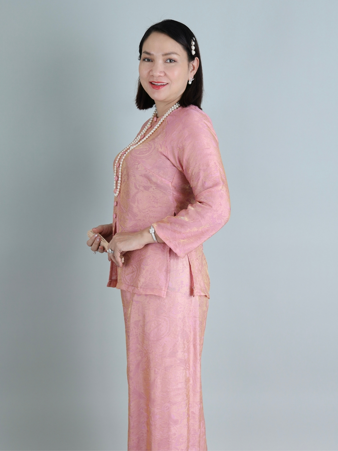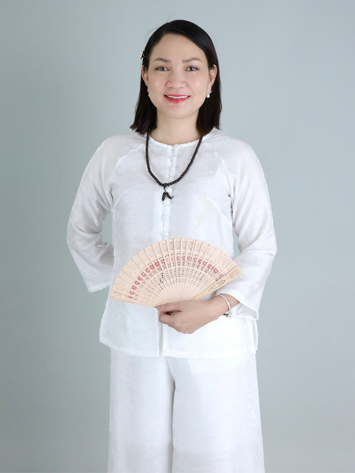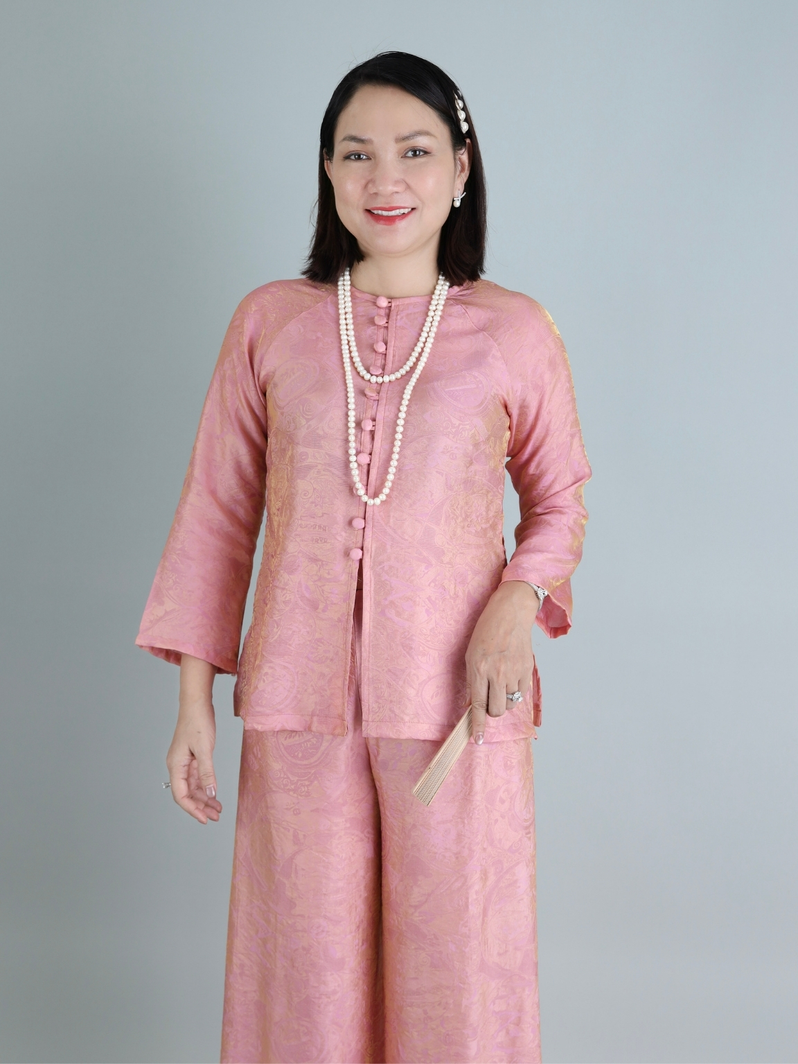 Bộ pháp phục Tịnh Đào được thiết kế từ chất liệu lụa nha xá dệt hoa mềm – mát – nhẹ, mang lại sự thoải mái và trang nghiêm cho quý cô khi đi chùa, đi lễ, tu tập, thiền định hoặc mặc thường ngày.